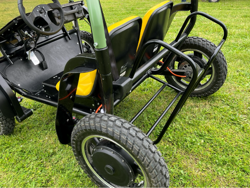 • Seguridad pasiva asegurada por una estructura rígida que actúa como jaula antivuelco y cinturones de seguridad disponibles para uso fuera del campo de golf